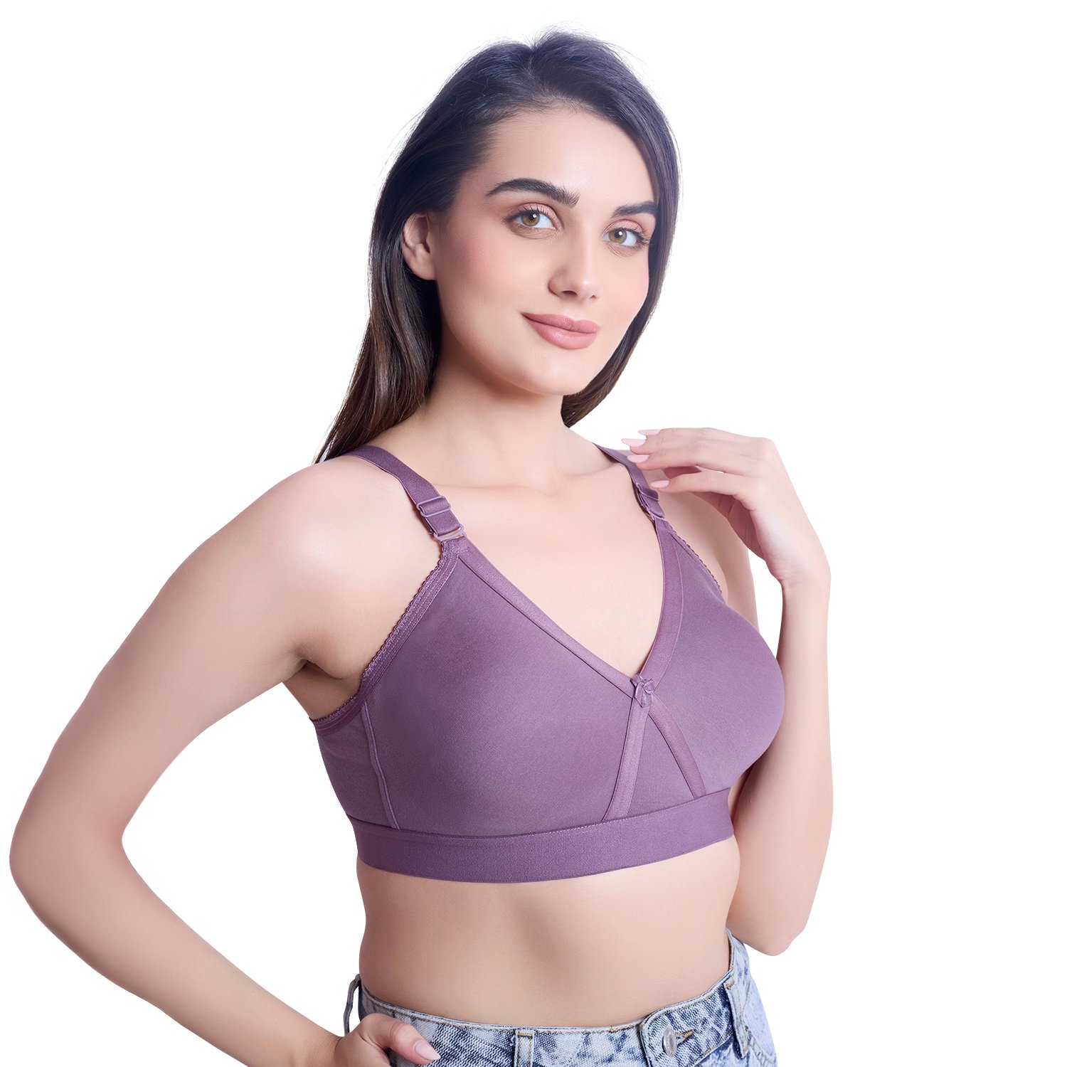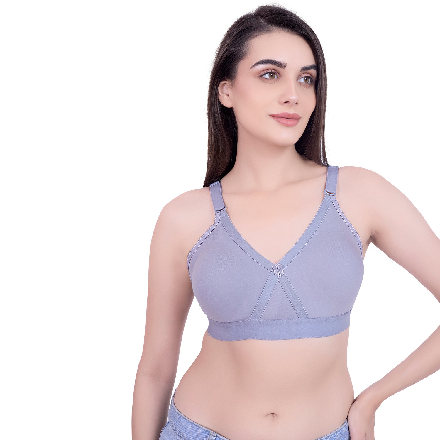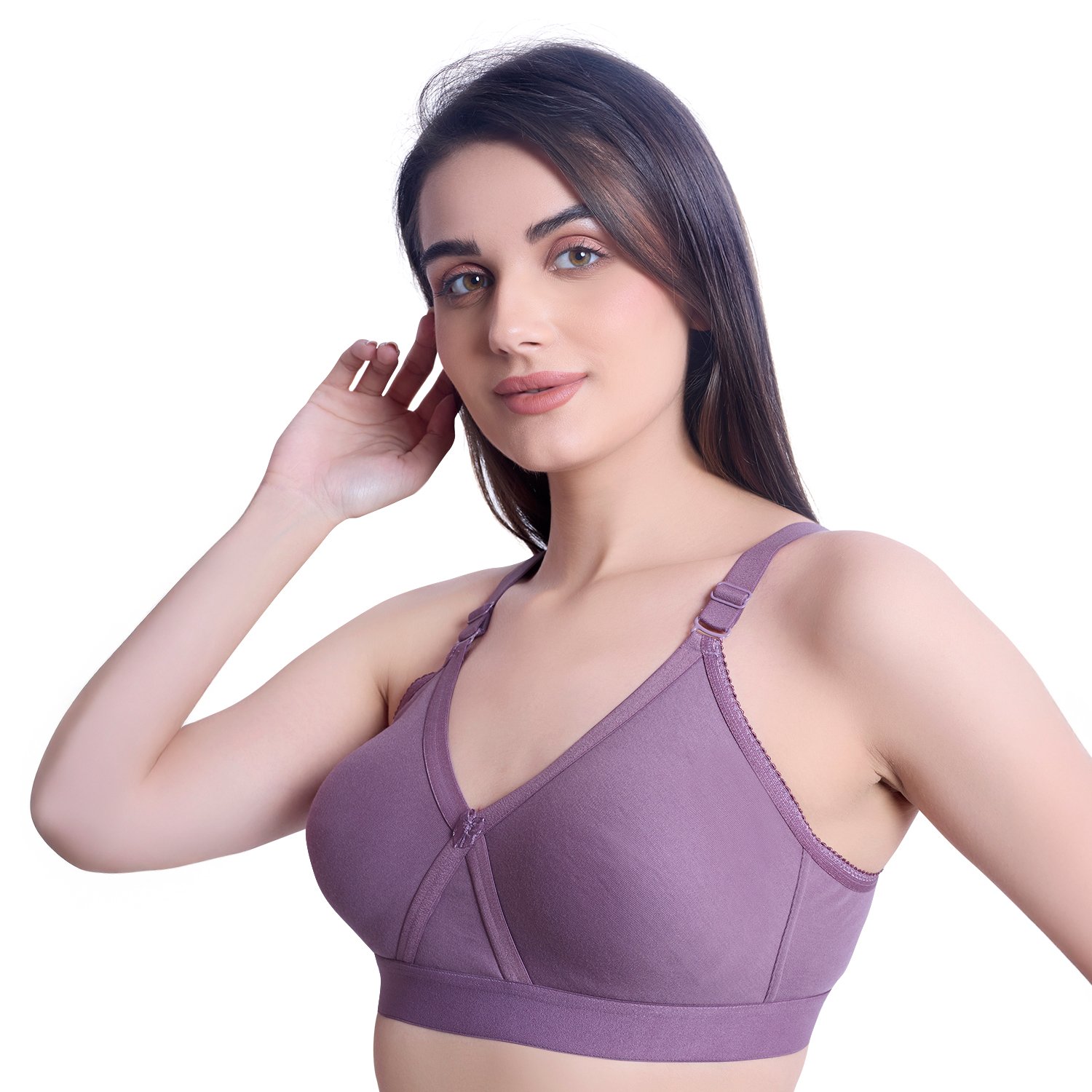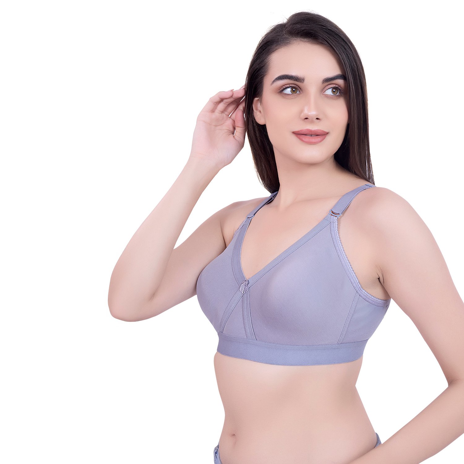 Comfort-fit D-cup bra made from soft cotton blend fabric for everyday wear.